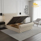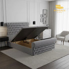 The Royal Milan Chesterfield Ottoman Divan Bed is a statement. The elegant Chesterfield style, with a Spanish buttoned design and padded upholstery, creates a grand yet sophisticated piece. The Aliyah also features a distinct curved wing to give your bedroom the unique edge you want.