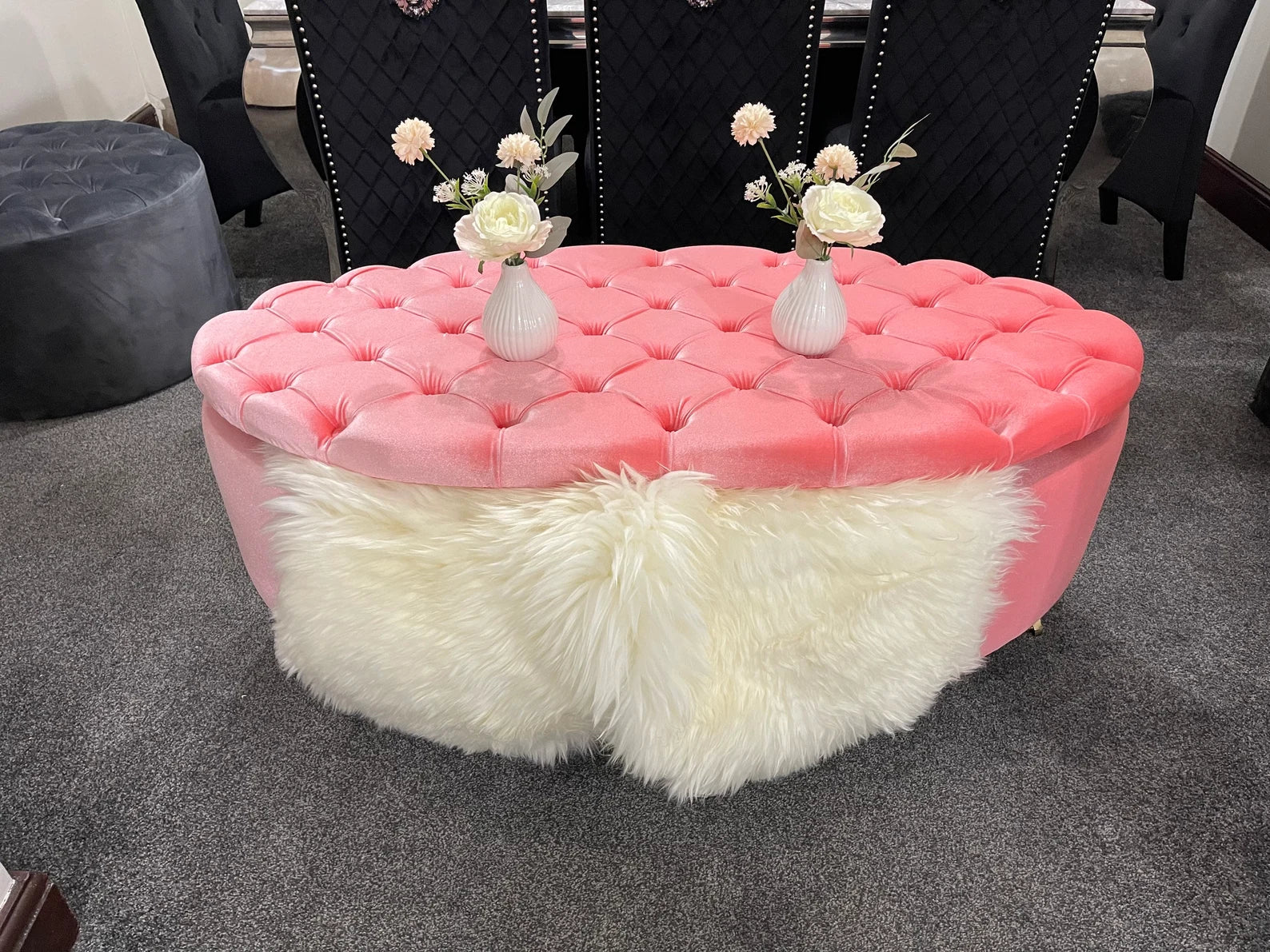 Luxurious Chesterfield Comfy Round shaped Pouffe Footstool
